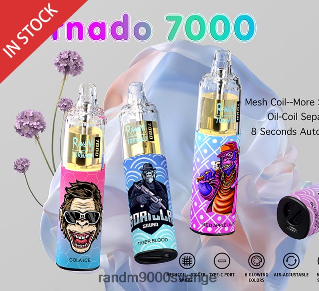 RandM Smaken – RandM Tornado 7000 luftflödeskontroll vape enhet 1st L4Z4X0164 cool mynta