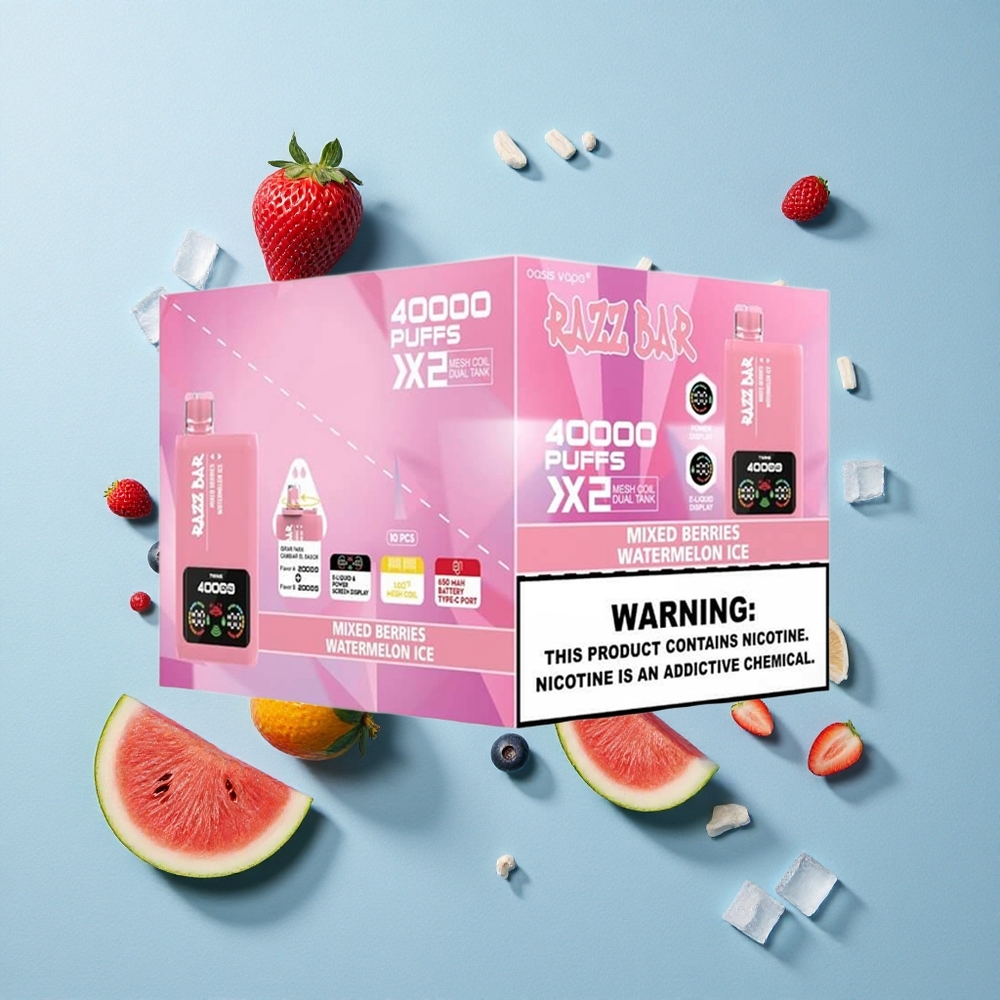 Razz Bar 40000 Puffs Engångsvape Blandade Bär_Vattenmelon Is med 1.0Ohm 2 Mesh Coil