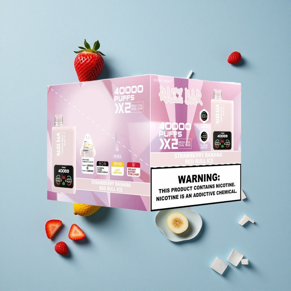 Razz Bar 40000 Puffs Engångsvape Jordgubb_Banana_Red Bull Is med 1.0Ohm 2 Mesh Coil