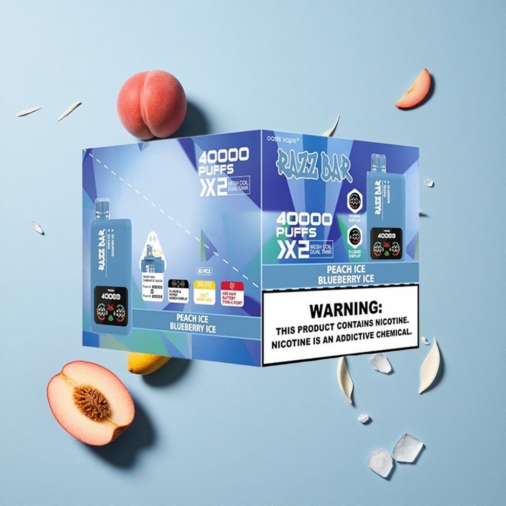 Razz Bar 40000 Puffs Engångsvape Persika Is_Blåbär Is med 650 Mah Batteri